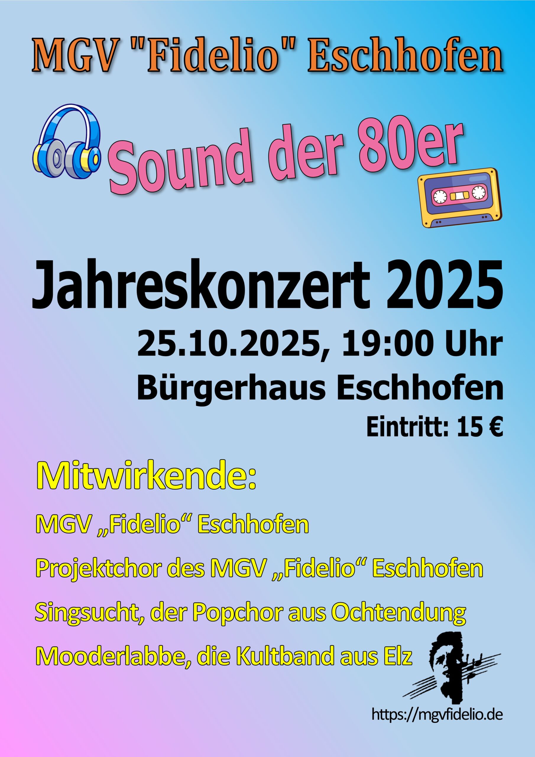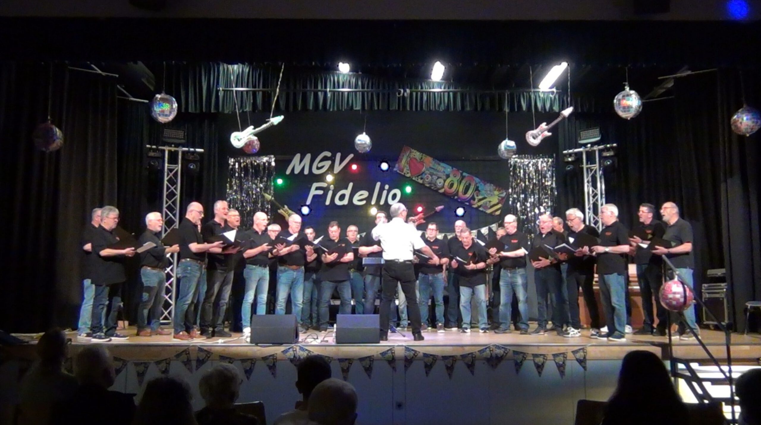 Eschhofen. – Am Samstag, dem 25. Oktober 2025, lud der MGV „Fidelio“ zu einem Konzert ganz besonderer Art ins Eschhöfer Bürgerhaus ein. Unter dem Motto „Sound der 80er“ präsentierte der Männerchor ein buntes musikalisches Programm im eigens dafür dekorierten Saal.